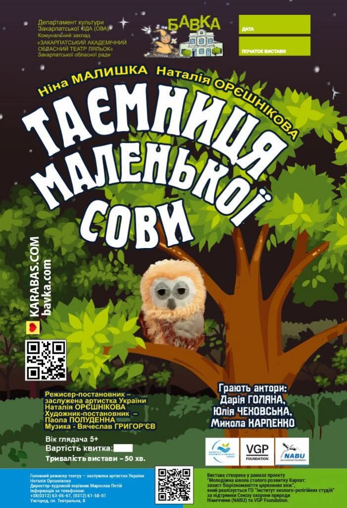 25 квітня об 11:00 та о 13:00 – покази екологічної вистави «Таємниця маленької сови». П’єсу написали керівниця літературно-драматургічної частини театру Ніна Малишка і головна режисерка, заслужена артистка України Наталія Орєшнікова, яка здійснила постановку.