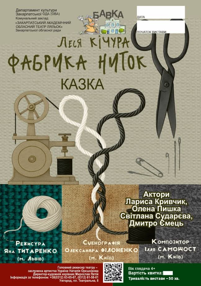 26 квітня об 11:00 та о 13:00 – покази вистави «Фабрика ниток» за п’єсою Лесі Кічури у режисерському втіленні Яни Титаренко.