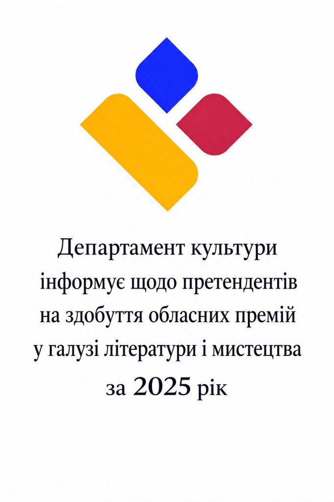 Департамент культури інформує про завершення приймання пропозицій щодо кандидатів на здобуття обласних премій у галузі літератури та мистецтва за 2025 рік.