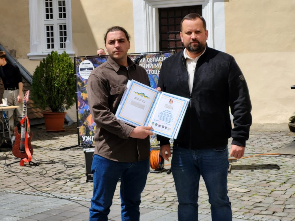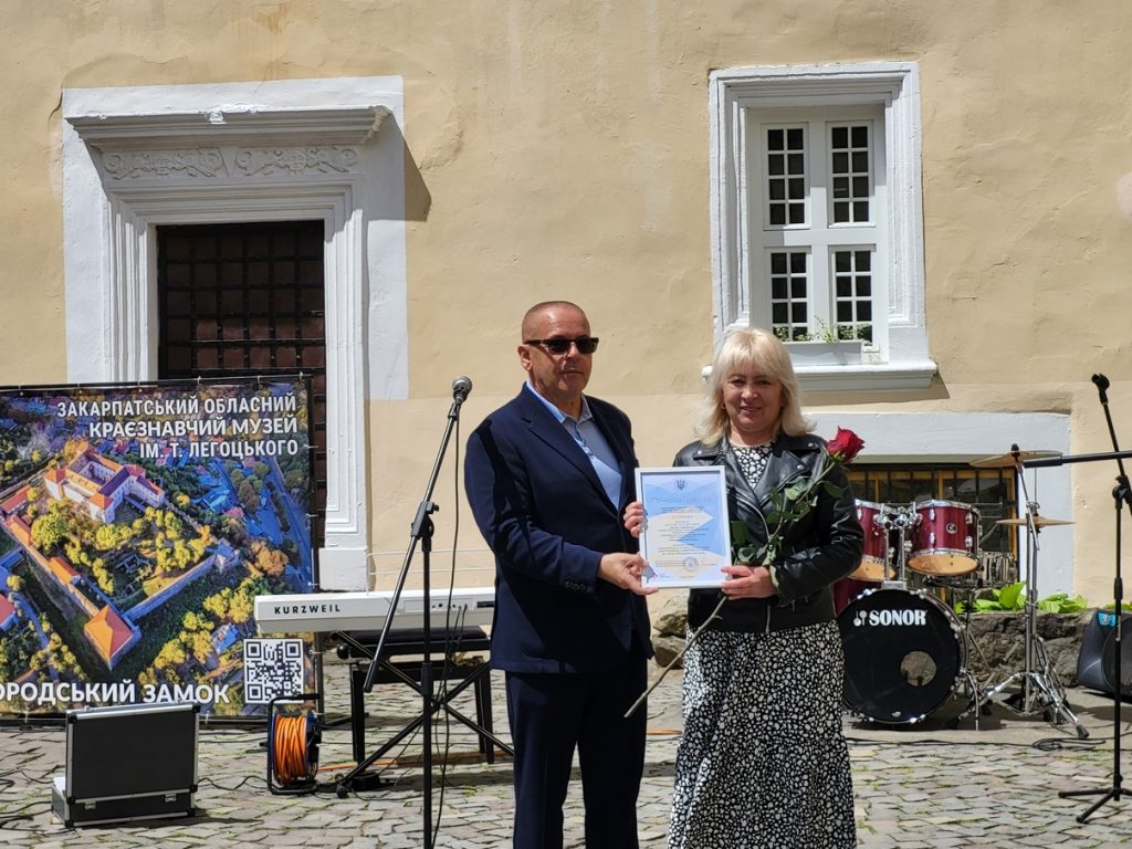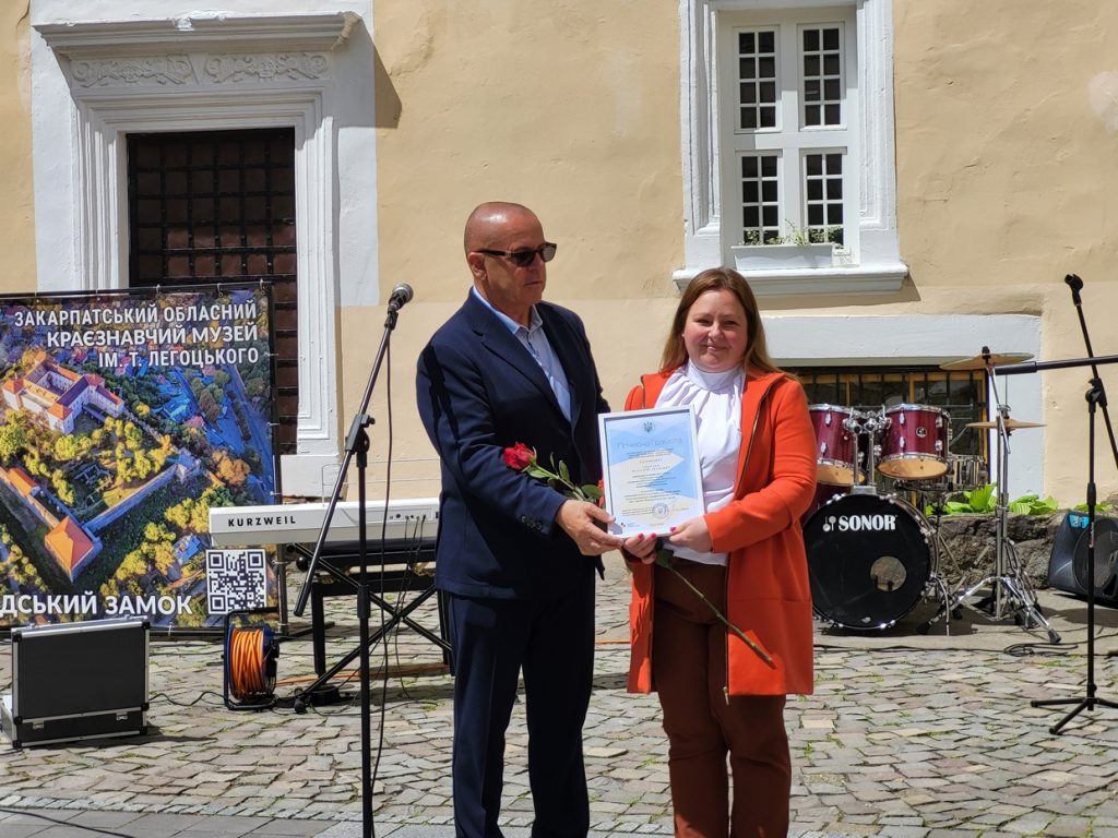 Вітання від очільника Закарпатської ОВА Мирослава Білецького та Подяку облдержадміністрації для колективу музею передав заступник директора департаменту культури Віктор Кравчук. У своїй промові він відзначив вагому роль закладу у збереженні нашої національної пам’яті та популяризації культурно-мистецьких надбань минулого й сьогодення. Вручив Почесні грамоти департаменту низці музейників.