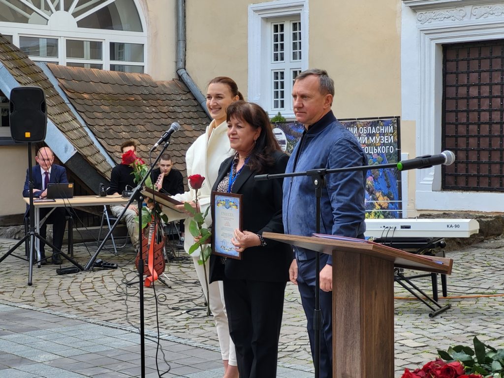 Своєю чергою директорка Ольга Шумовська так само відзначила низку працівників грамотами музею. Окрім того – вручила подяки за співпрацю, цінний внесок у розвиток музею та збереження культурної спадщини нашого краю окремим митцям, дослідникам, меценатам. Зокрема, таку подяку отримали головний спеціаліст відділу збереження об’єктів культурної спадщини та музеїв департаменту культури ОВА, доктор філософії з історії та археології Костянтин Куцов, заслужений художник України Василь Вовчок, художник і куратор мистецького об’єднанням «Фокус група» Любомир Брензович, а також Академія культури і мистецтв та її ректорка, професорка Наталія Шетеля і відомий музичний колектив вишу – «Арт-батальйон» під керівництвом заслуженої працівниці культури України Олесі Глуханич.